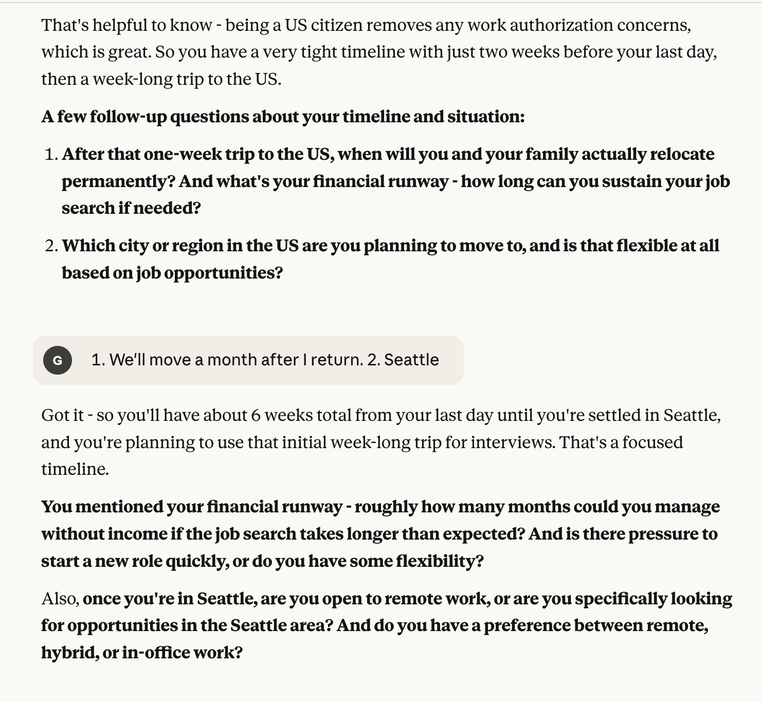 I spent about 30 minutes answering questions about my goals, experience, and constraints. I’ve literally coached hundreds of managers in their job search, and I was surprised by how great some of these questions were.